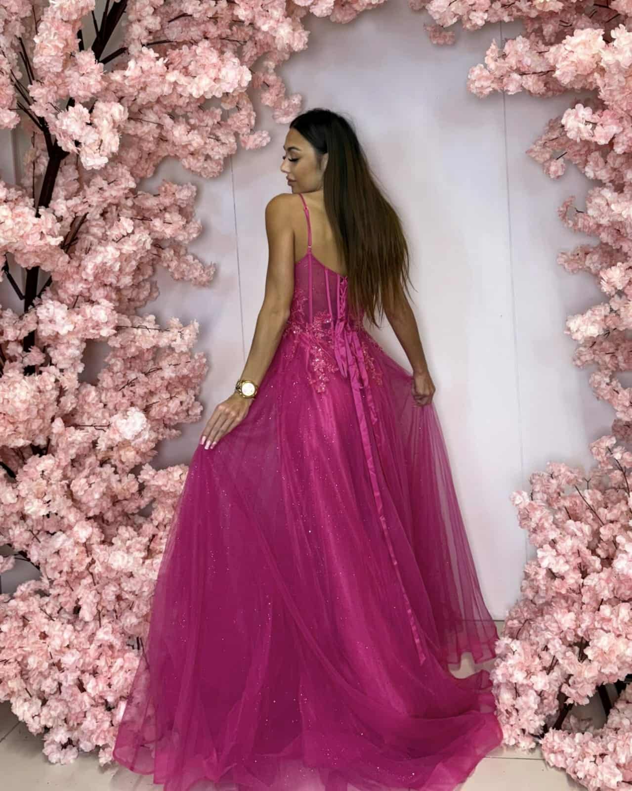 Suknia Maxi Tiulowa Gorsetowa Paradise Fuksja