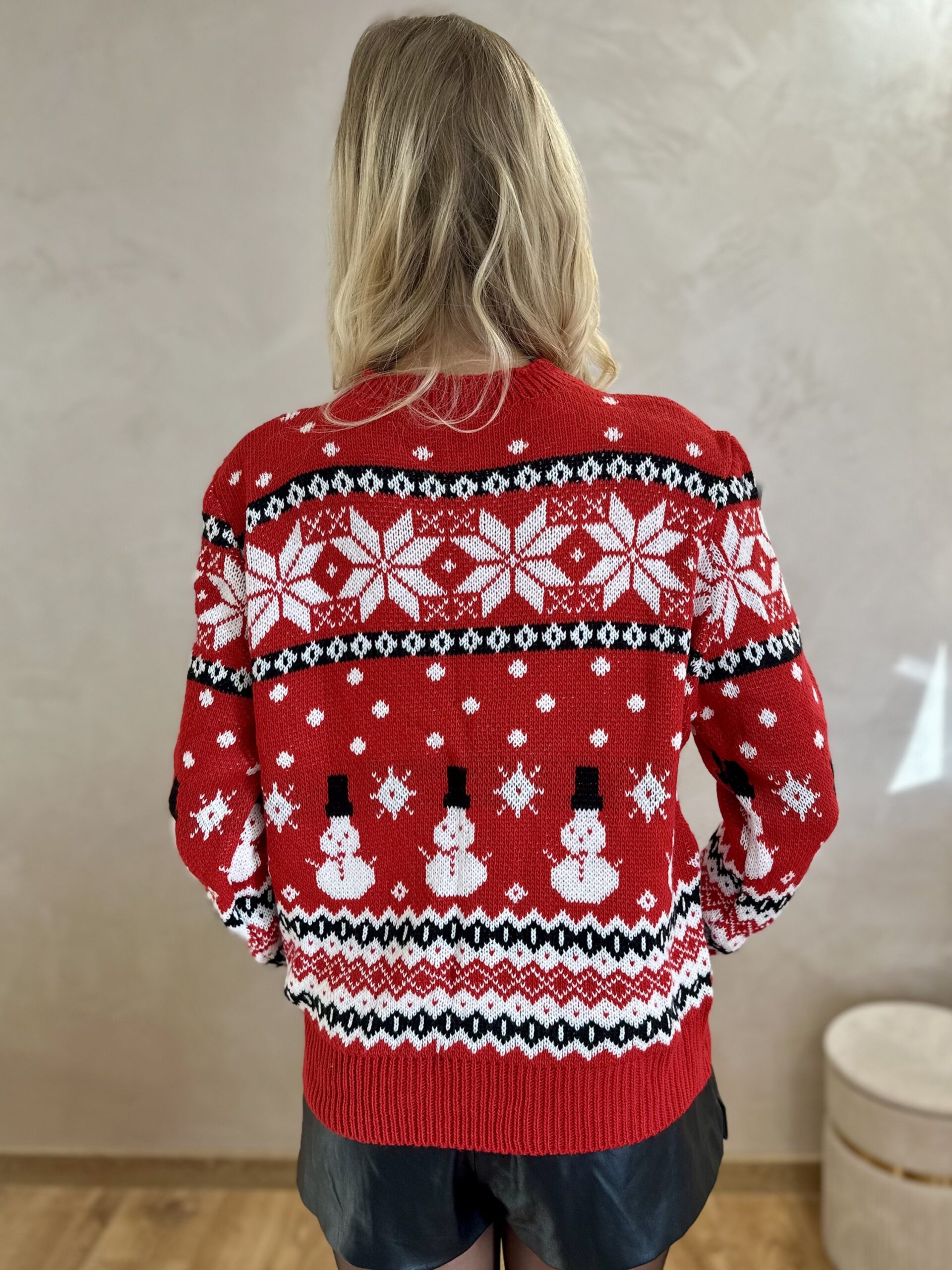 Sweter Świąteczny Norweskie Wzory Bałwanki Czerwony