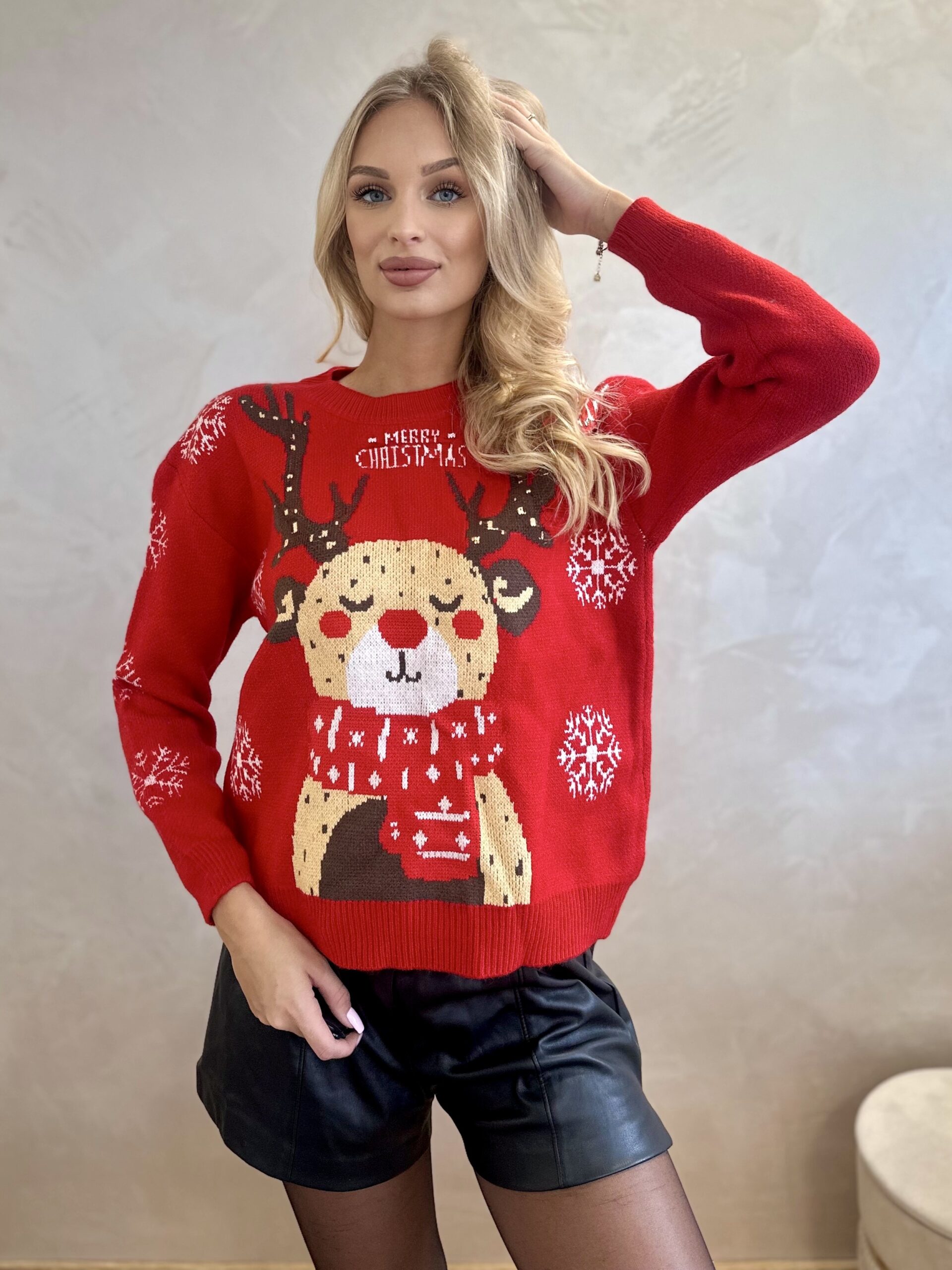 Sweter Świąteczny Renifer Rogacz Merry Christmas Czerwony