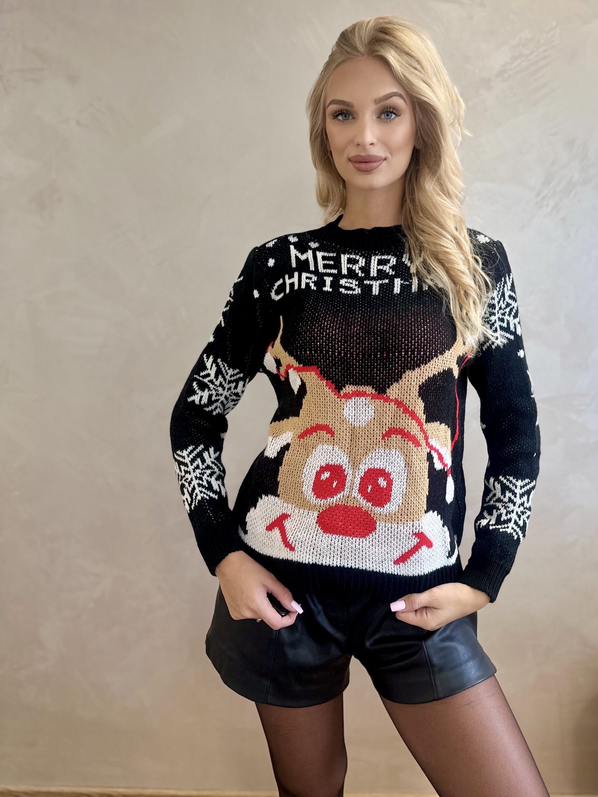 Merry Christmas Reindeer Sweater is a perfect sweater for the Christmas season. This beautiful model is made of the highest quality yarn, which thanks to a precise processing process adds softness, softness and maximum comfort. Christmas sweater in one universal size recommended for Mr wearing a size S, M, L, XL It will attract attention and you will be look amazing. A sweater with the image of Rudolf reindeer is a perfect proposition for upcoming holidays. Our Reindeer Sweaters it is a perfect proposition for a Santa Claus or Christmas gift. In our store you will find Christmas clothesthat will make you feel again the magic of Christmas. Festive character it will work both on a daily basis, and during dinner Christmas Eve. If you have any additional questions about this product, please do not hesitate to contact us by phone or via Facebook. One universal size recommended for ladies in size SML XL