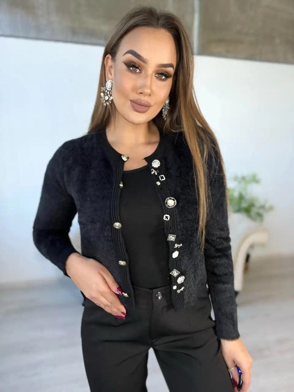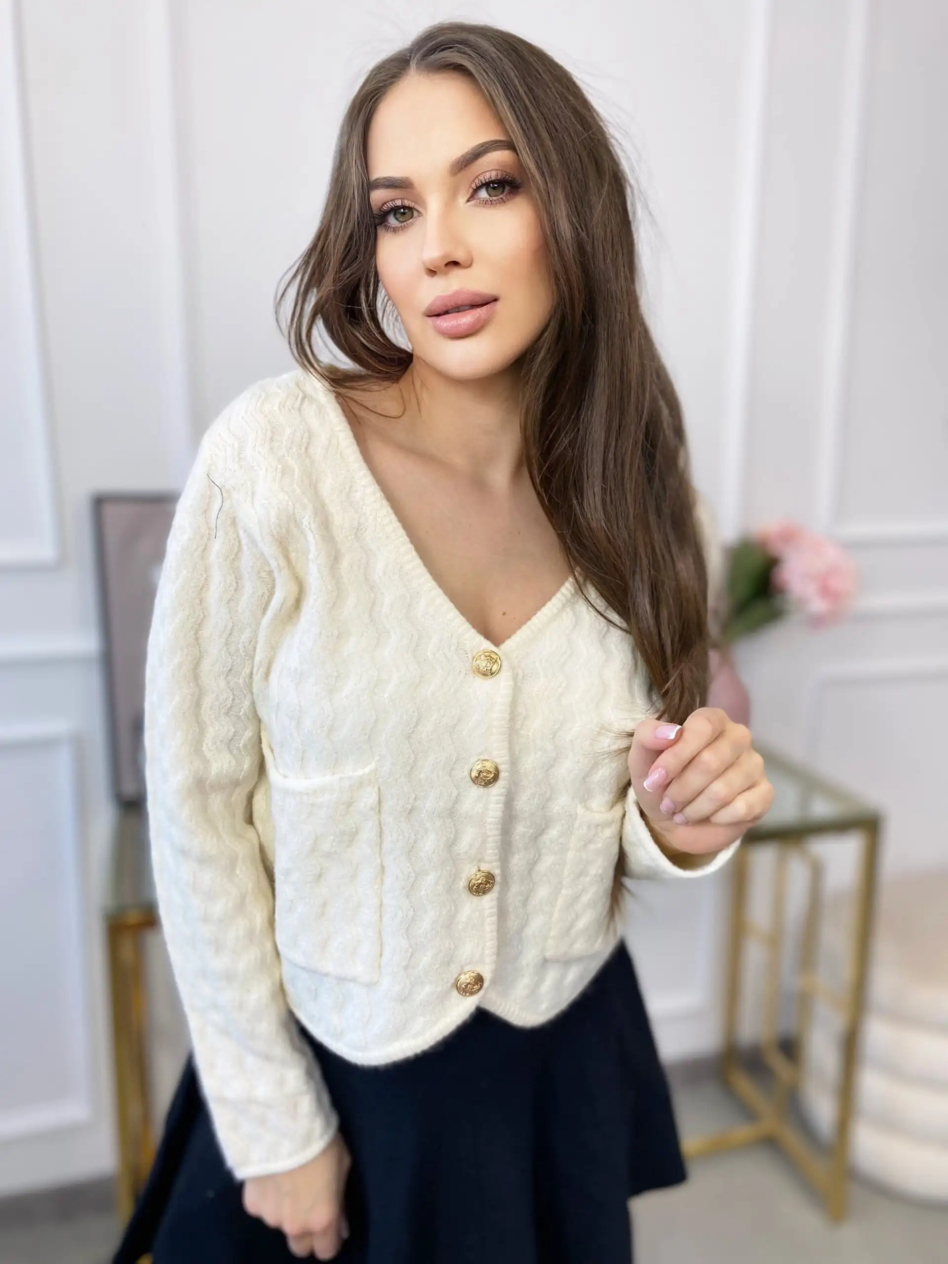 Różnorodność fasonów – w asortymencie znajdziesz klasyczne kardigany, swetry oversize, krótkie bolerka, golfy, swetry rozpinane oraz modne modele z dekoltem w serek.