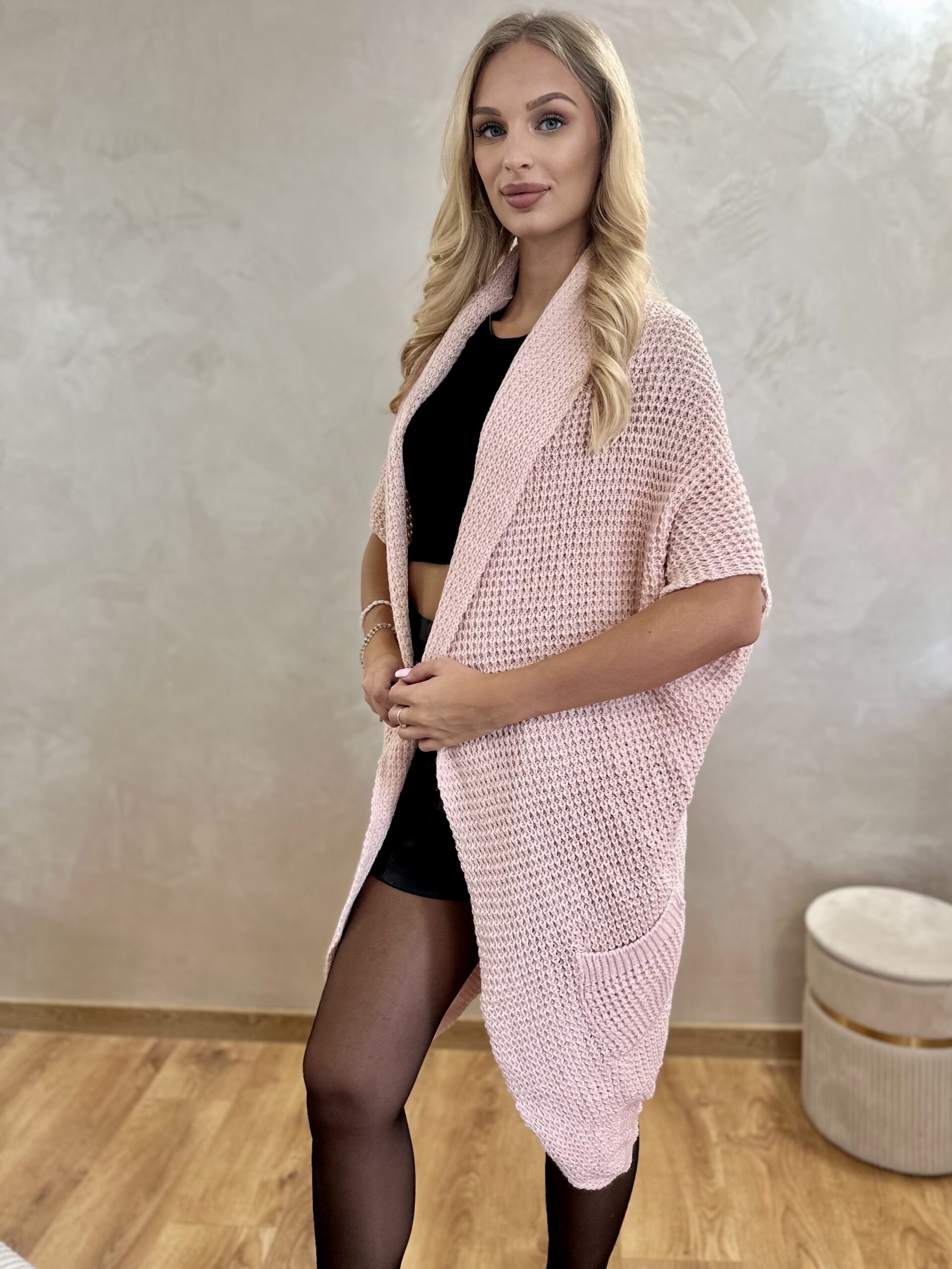 Kardigan Asymetryczny Moi Pudrowy Róż