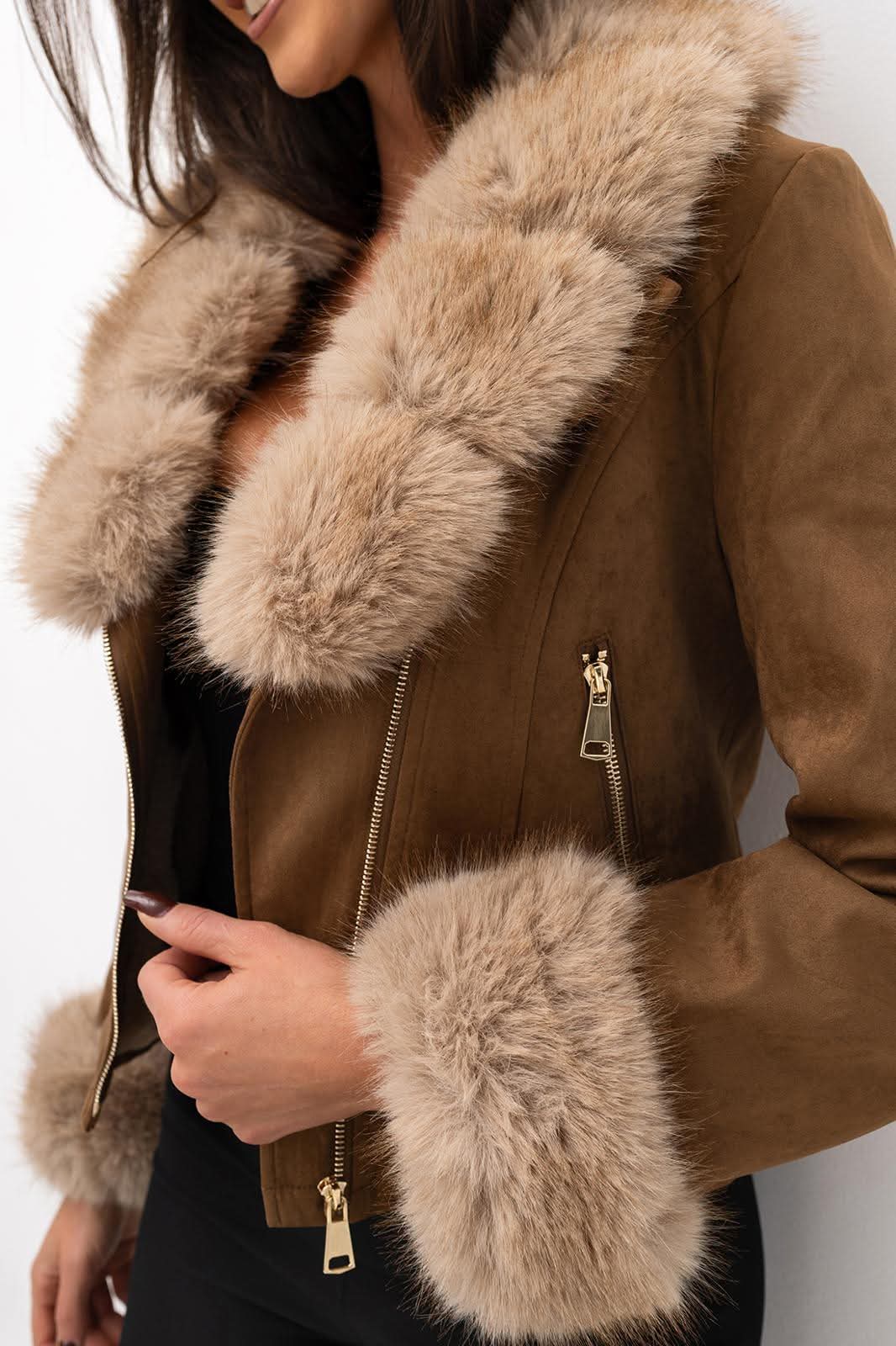 Kurtka Krótka Zamszowa Z futerkiem Sofia Karmel