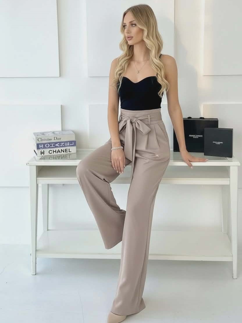 Elegantné béžové nohavice s vysokým pásom