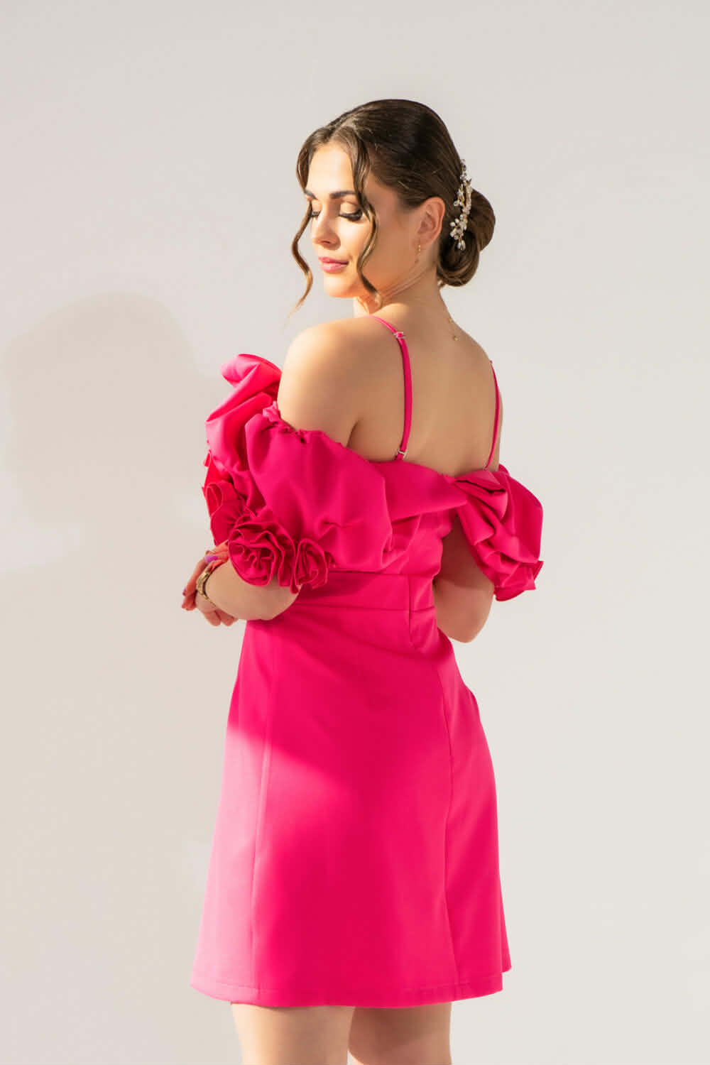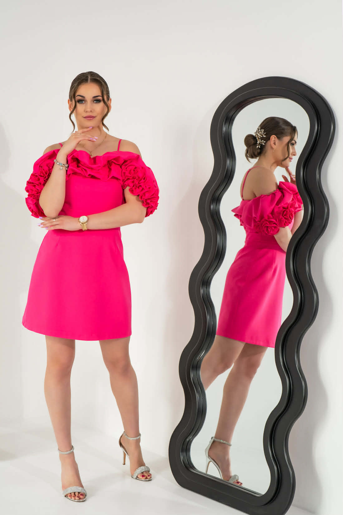 Krátke šaty Prima fuchsia s ozdobným výstrihom