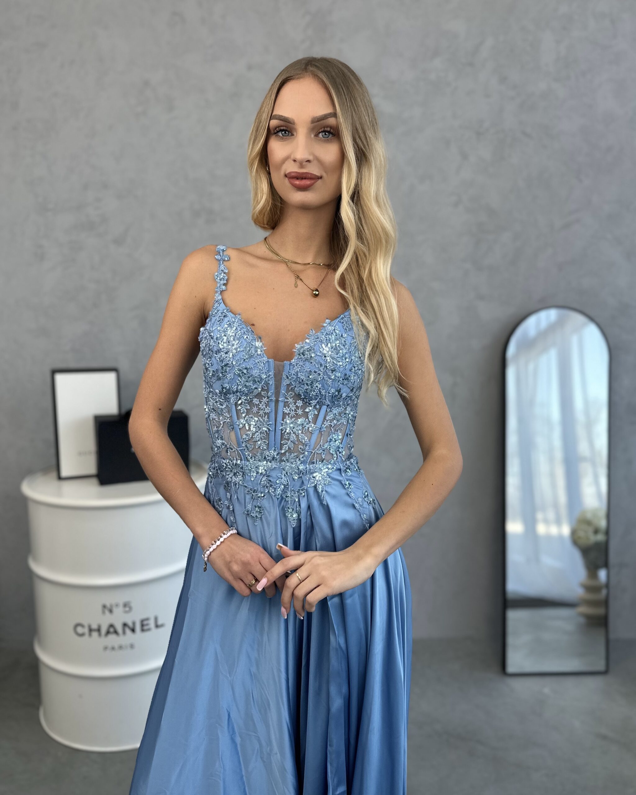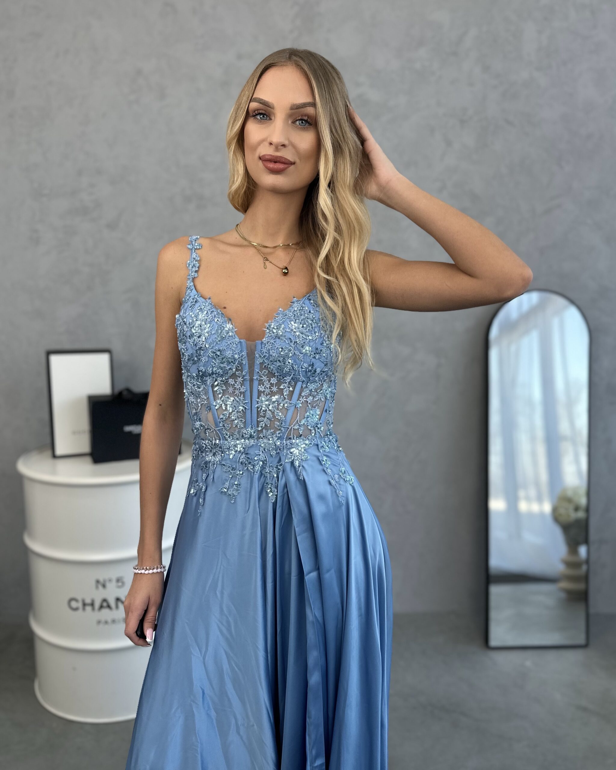 Krásne dlhé večerná róba zo vzdušného materiálu s čipkovaným topom zdobeným nádhernou výšivkou a ozdobami v podobe trblietavých kryštálov. Krásne odhaľuje ženské tvary - spodná časť šiat je celá zo splývavého materiálu. Šaty majú výstrih do V. V páse sú zúžené dokonale zvýrazňuje pás.Šaty majú vpredu všité košíčky, takže nemusíte nosiť podprsenku. Šaty Calisse s rozparkom v bielej farbe v maxi verzii sú perfektnou voľbou pre vašu vlastnú... svadbaŠaty majú vpredu rozparok - krásne odhaľuje nohu. To zaisťuje, že výtvor splní svoju úlohu v 100% - pritiahne pohľady hostí a pridá výnimočné sebavedomie. Dostupné vo veľkostiach SML. V našom internetovom obchode sú k dispozícii v niekoľkých farebných variantoch, takže neváhajte a vyberte si tú, ktorá je pre vás ideálna. Ak sa neviete rozhodnúť, ktorú farbu..., veľkosť je pre vás to najlepšie kontaktuj nás cez Facebook alebo telefón. Ak veľkosť nie je na stránke, kontaktujte nás.