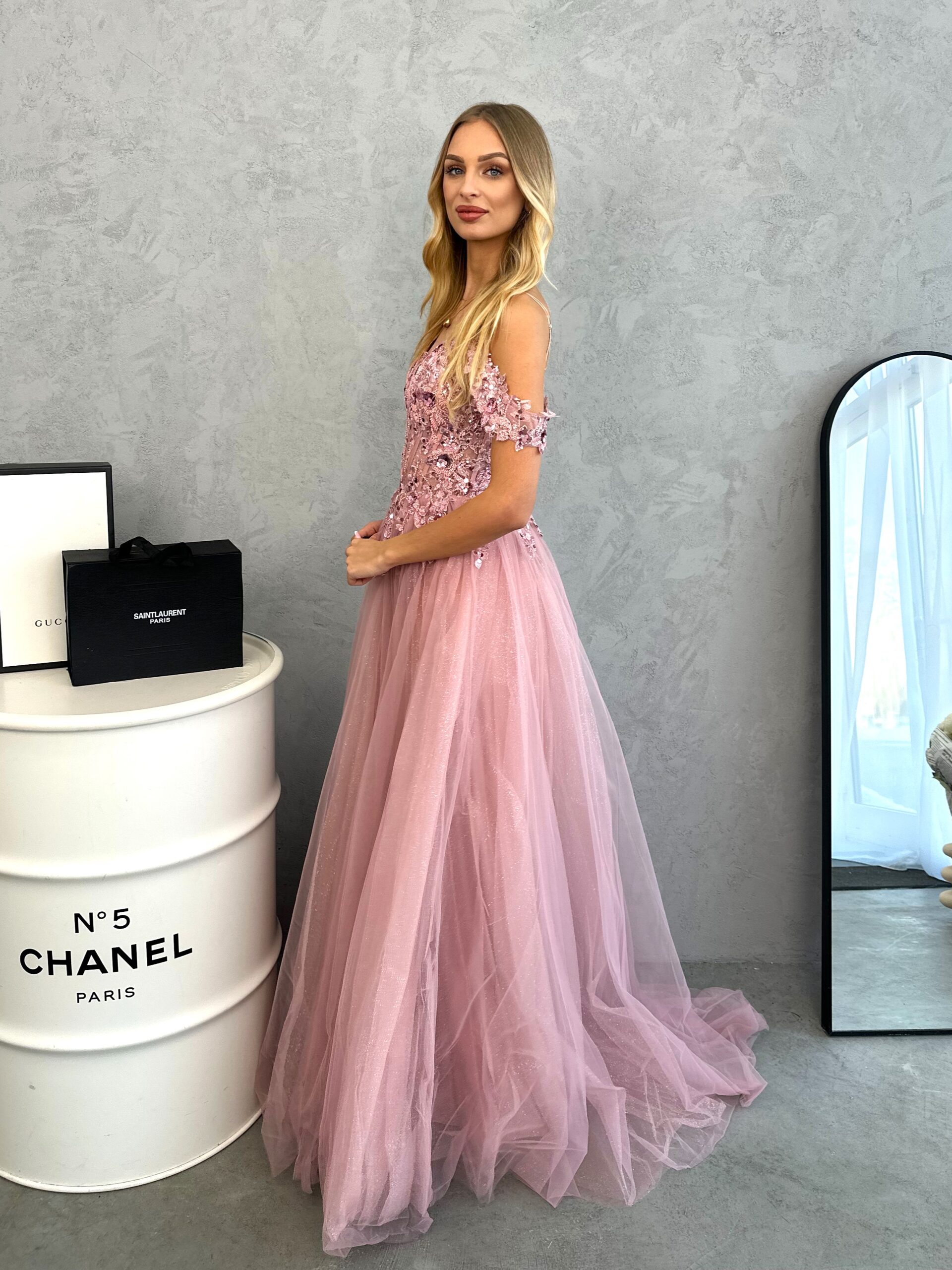 Tieto krásne dlhé šaty, bohato zdobené výšivkou a trblietavými kryštálmi, krásne zvýrazňujú ženské krivky. Šaty krásne odhaľujú chrbát - španielske. Šaty snov maxi dĺžka s odhalenými ramenami a zdobeným topom. Šitie dáva úžasný efekt a kryštály sa na svetle nádherne lesknú. Zúžená v páse dokonale zvýrazní pás. Zadná strana je úžasne strihaná, v tvare písmena U. Diera Šaty bol vyrobený z niekoľkých vrstiev svetlého tylu pod ním. Šaty Vpredu má všité košíčky, takže nemusíte nosiť podprsenku. Vyrobené a šité v Poľsku. Dostupné vo veľkostiach XS SML XL XXL   .Model má odnímateľné rukávy. Šaty Madelinefashion je vynikajúcou voľbou na svadbu, ples, Silvestra a iné elegantné špeciálne udalosti. Dostupné na našom e-shope vo viacerých farebných variantoch, tak neváhajte a vyberte si tú, ktorá je pre vás ako stvorená. Ak sa neviete rozhodnúť akú farbu, veľkosť je pre vás to najlepšie kontaktuj nás cez Facebook alebo telefón. Ak veľkosť nie je na stránke, kontaktujte nás.