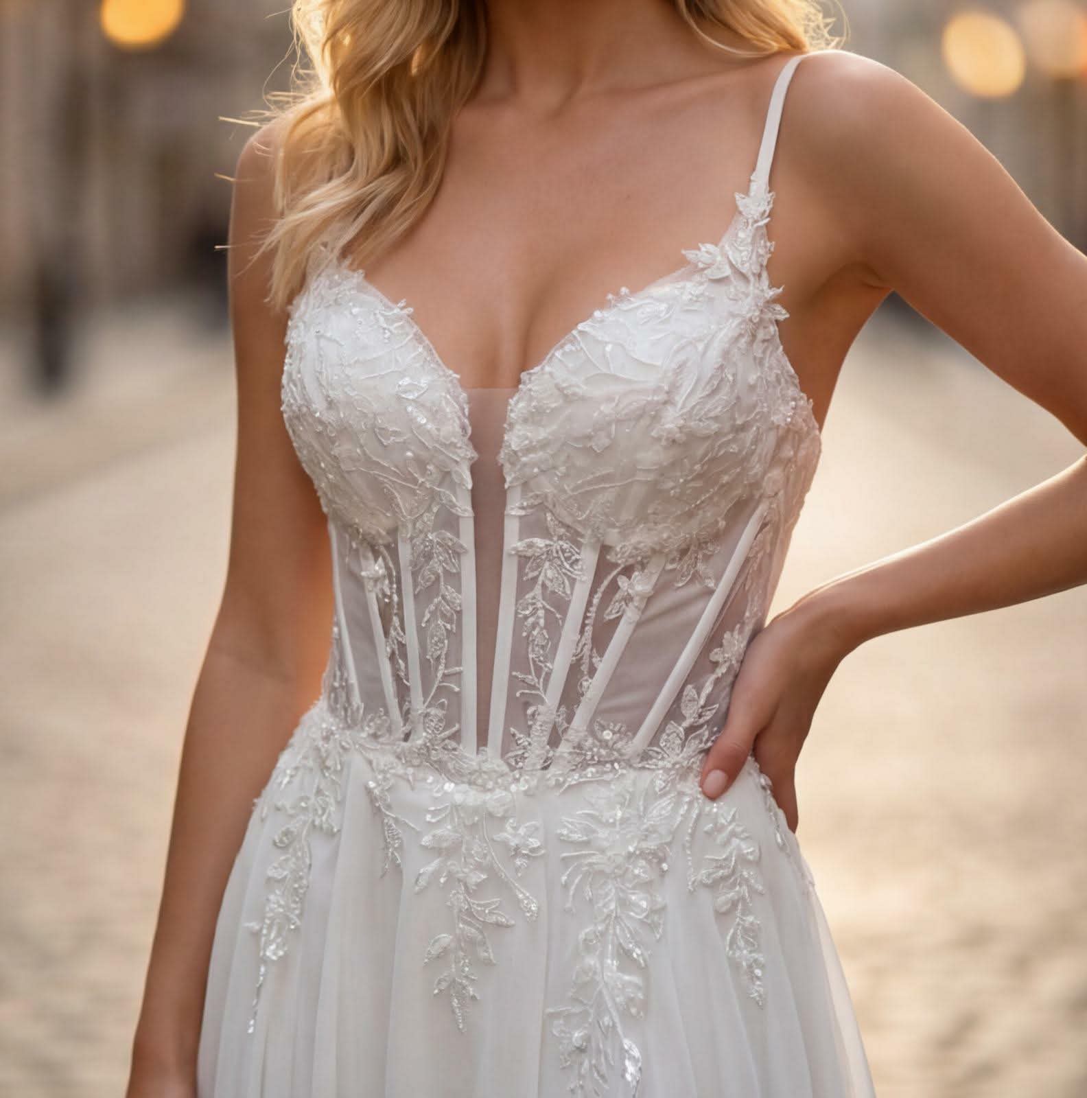 Krásne dlhé šaty zo vzdušného materiálu s čipkovaným topom zdobeným nádhernou výšivkou a ozdobami v podobe trblietavých kryštálov. Krásne odhaľuje ženské tvary - spodná časť šiat je celá zo splývavého materiálu. Šaty majú výstrih do V. V páse sú zúžené dokonale zvýrazňuje pás.Šaty majú vpredu všité košíčky, takže nemusíte nosiť podprsenku. Šaty Solenne s rozparkom v bielej farbe v maxi verzii sú perfektnou voľbou pre vašu vlastnú... svadbaŠaty majú vpredu rozparok - krásne odhaľuje nohu. To zaisťuje, že výtvor splní svoju úlohu v 100% - pritiahne pohľady hostí a pridá výnimočné sebavedomie. Dostupné vo veľkostiach SML. V našom internetovom obchode sú k dispozícii v niekoľkých farebných variantoch, takže neváhajte a vyberte si tú, ktorá je pre vás ideálna. Ak sa neviete rozhodnúť, ktorú farbu..., veľkosť je pre vás to najlepšie kontaktuj nás cez Facebook alebo telefón. Ak veľkosť nie je na stránke, kontaktujte nás.