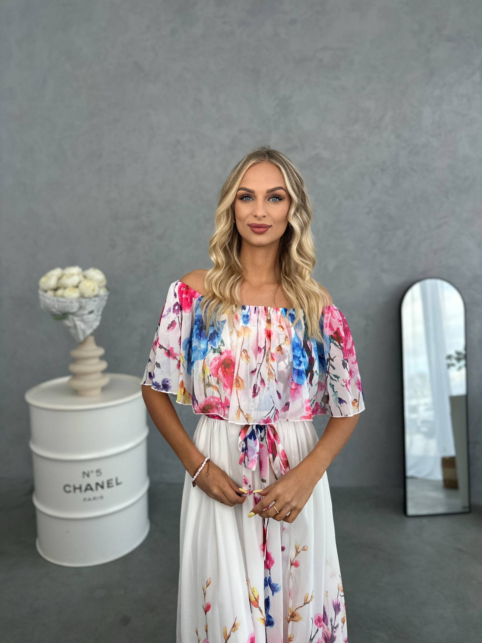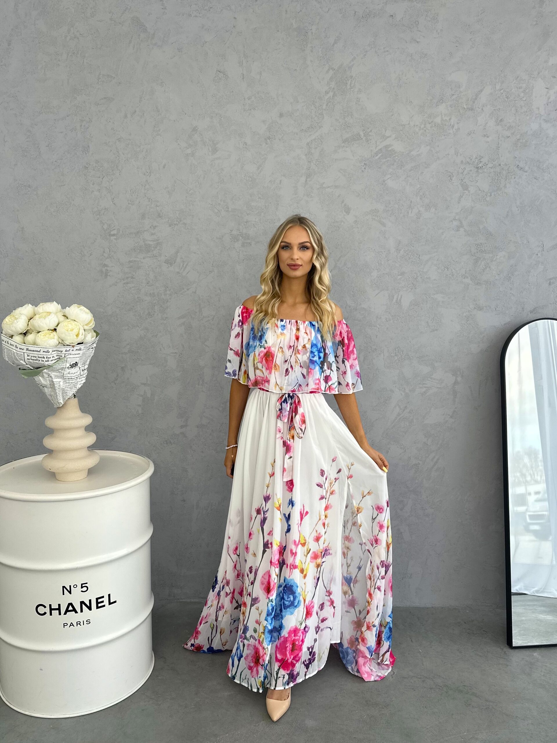 | Meno modela | Biele vzdušné maxi šaty Roselle s ružovými kvetmi |