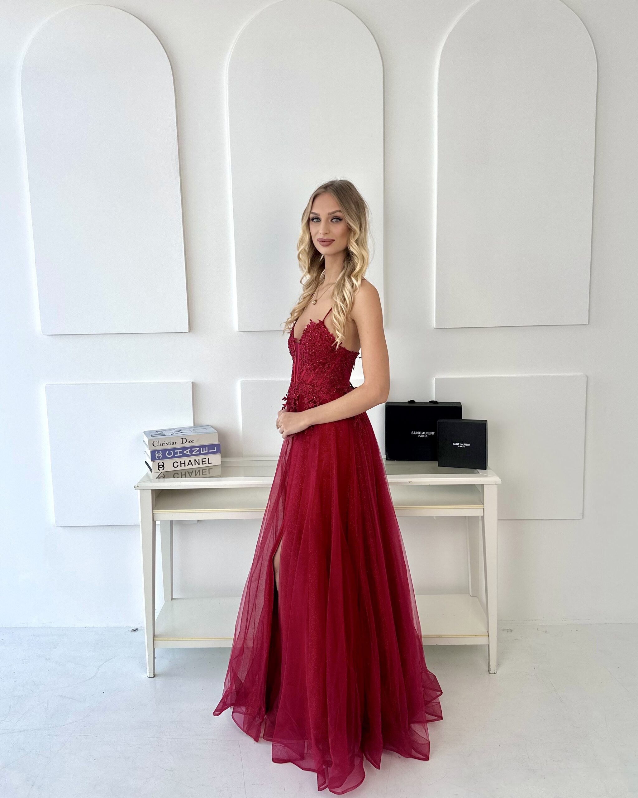 Tieto jedinečné šaty sú stelesnením elegancie, ženskosti a luxusu. Vyrobené z jemný, vzdušný tyl, ktorá v pohybe krásne splýva a vytvára ľahký, romantický efekt. Šaty dokonale zvýrazňuje ženské tvary, zdôrazňujúc pás a siluetu a zároveň zaisťujúc pohodlie a jednoduchosť nosenia. Vrchná časť šiat je priliehavý korzet s výstužnými košíčkami, vďaka čomu nie je potrebná ďalšia podprsenka. Korzet krásne tvaruje poprsie, zdôrazňuje pás a dodáva siluete harmonický tvar. Dekorácie v podobe výšivka a trblietavé kryštály dodajú šatám luxusný charakter a jemný lesk pri každom pohybe. Šaty majú tenké, jemné ramienka, a šnurovanie vzadu umožňuje dokonalé prispôsobenie, poskytuje pohodlie a zaisťuje, že každý detail dokonale sedí. Tylový lem šiat vzdušne padá a vytvára pôsobivú, mierne rozšírenú líniu, ktorá vyzerá fenomenálne v pohybe aj pri pózovaní. Modelka je ideálne na špeciálne príležitosti — svadby, plesy, bankety a iné elegantné udalosti. Vrchný diel korzetu a tylový spodný diel Vytvárajú kombináciu klasického a moderného štýlu, vďaka čomu sú šaty vhodné pre rôzne tvary postavy a každá žena sa v nich bude cítiť výnimočne. Šaty sú dostupné v... veľkosti XS, S, M a L, a rôzne farby vám umožňujú prispôsobiť si ho vašim individuálnym preferenciám. Ak sa neviete rozhodnúť, ktorá farba alebo veľkosť je pre vás najvhodnejšia, kontaktujte nás prostredníctvom Facebook alebo telefón — Naši poradcovia vám radi pomôžu vybrať tú správnu možnosť. Ak požadovanú veľkosť nemáte na webovej stránke, kontaktujte nás — často ju vieme pre vás objednať alebo odporučiť alternatívu. .Tieto šaty sú kombináciou elegancie, klasického a moderného štýlu - vytvorené tak, aby sa každá žena cítila jedinečná a oslnivá.