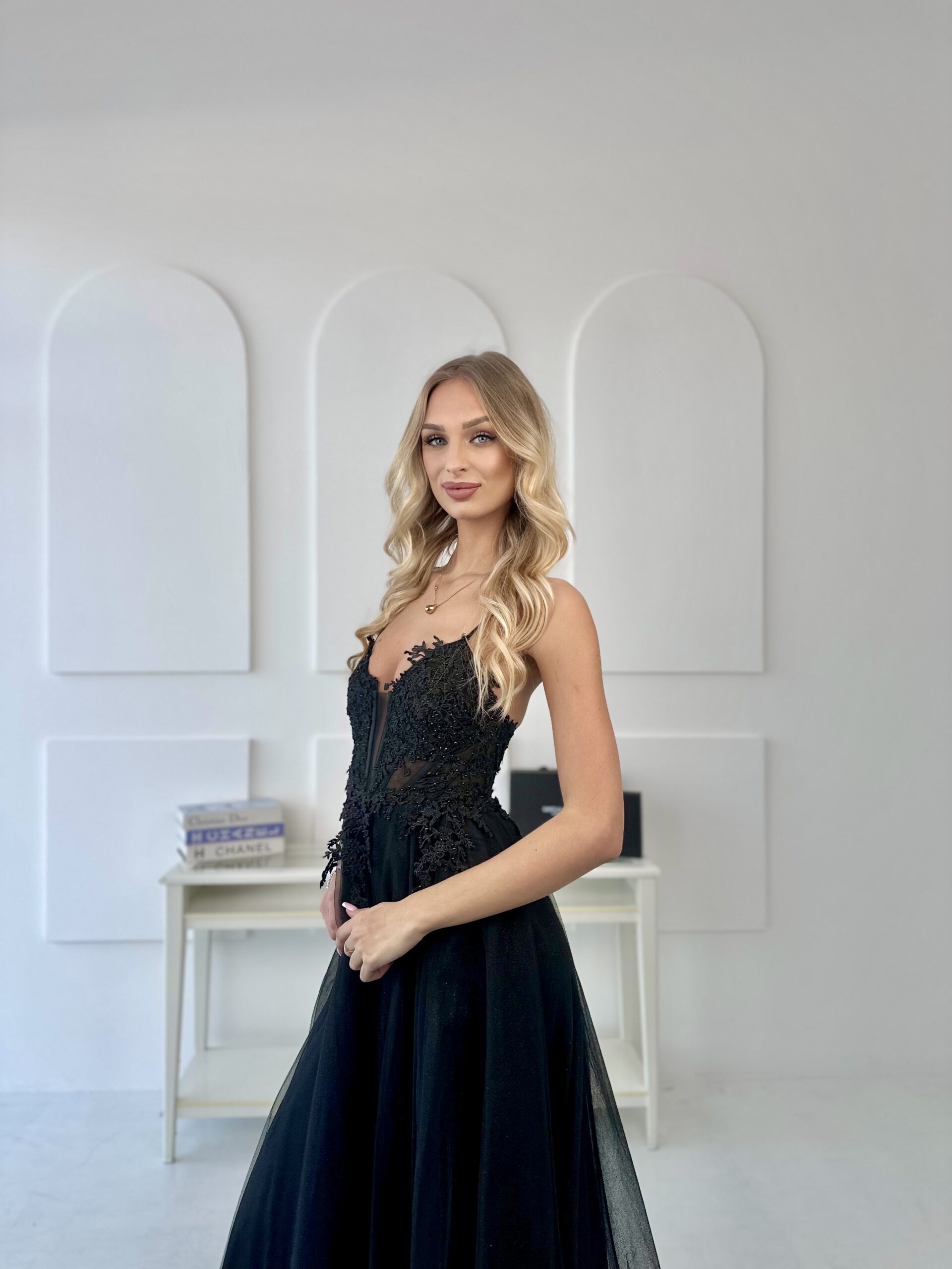 Tieto jedinečné šaty sú stelesnením elegancie, ženskosti a luxusu. Vyrobené z jemný, vzdušný tyl, ktorá v pohybe krásne splýva a vytvára ľahký, romantický efekt. Šaty dokonale zvýrazňuje ženské tvary, zdôrazňujúc pás a siluetu a zároveň zaisťujúc pohodlie a jednoduchosť nosenia. Vrchná časť šiat je priliehavý korzet s výstužnými košíčkami, vďaka čomu nie je potrebná ďalšia podprsenka. Korzet krásne tvaruje poprsie, zdôrazňuje pás a dodáva siluete harmonický tvar. Dekorácie v podobe výšivka a trblietavé kryštály dodajú šatám luxusný charakter a jemný lesk pri každom pohybe. Šaty majú tenké, jemné ramienka, a šnurovanie vzadu umožňuje dokonalé prispôsobenie, poskytuje pohodlie a zaisťuje, že každý detail dokonale sedí. Tylový lem šiat vzdušne padá a vytvára pôsobivú, mierne rozšírenú líniu, ktorá vyzerá fenomenálne v pohybe aj pri pózovaní. Modelka je ideálne na špeciálne príležitosti — svadby, plesy, bankety a iné elegantné udalosti. Vrchný diel korzetu a tylový spodný diel Vytvárajú kombináciu klasického a moderného štýlu, vďaka čomu sú šaty vhodné pre rôzne tvary postavy a každá žena sa v nich bude cítiť výnimočne. Šaty sú dostupné v... veľkosti XS, S, M a L, a rôzne farby vám umožňujú prispôsobiť si ho vašim individuálnym preferenciám. Ak sa neviete rozhodnúť, ktorá farba alebo veľkosť je pre vás najvhodnejšia, kontaktujte nás prostredníctvom Facebook alebo telefón — Naši poradcovia vám radi pomôžu vybrať tú správnu možnosť. Ak požadovanú veľkosť nemáte na webovej stránke, kontaktujte nás — často ju vieme pre vás objednať alebo odporučiť alternatívu. .Tieto šaty sú kombináciou elegancie, klasického a moderného štýlu - vytvorené tak, aby sa každá žena cítila jedinečná a oslnivá.