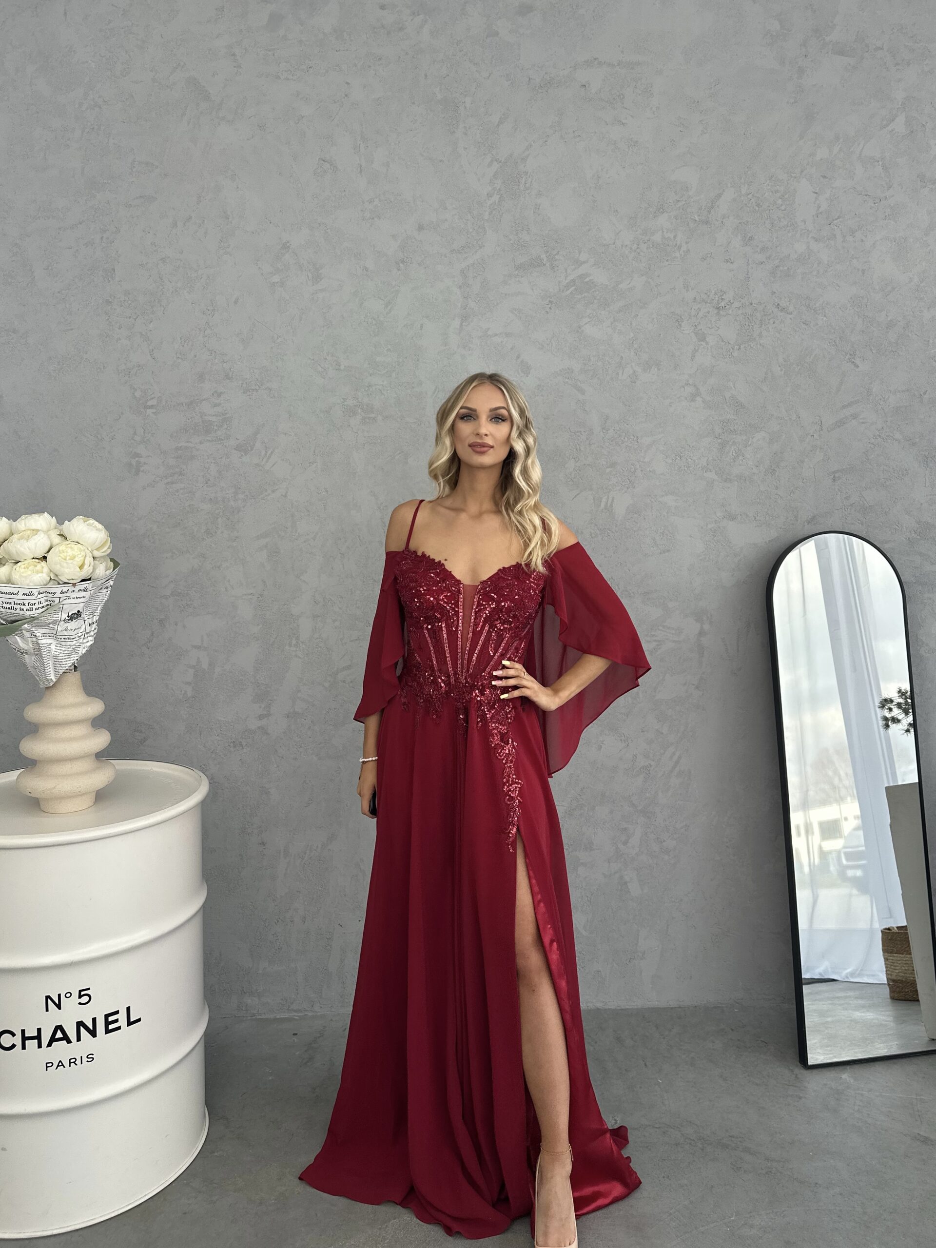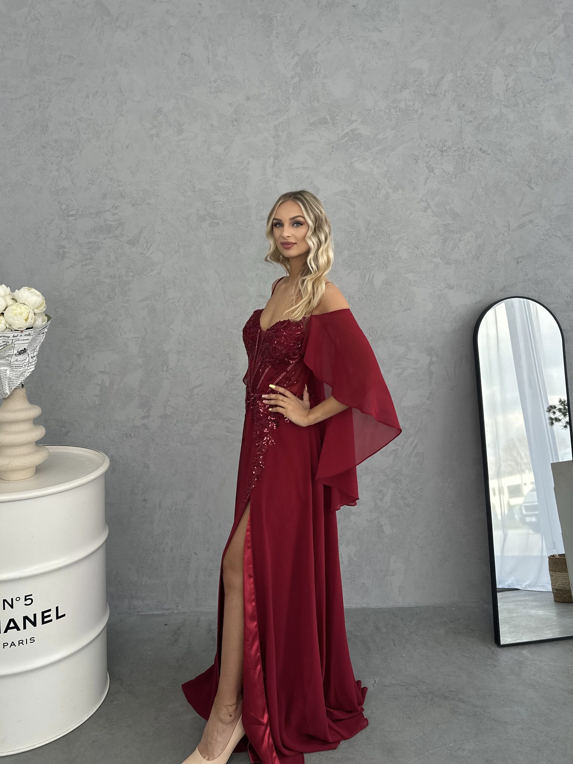 Večerné šaty Madame Lunessa v bordovej farbe so šálom
