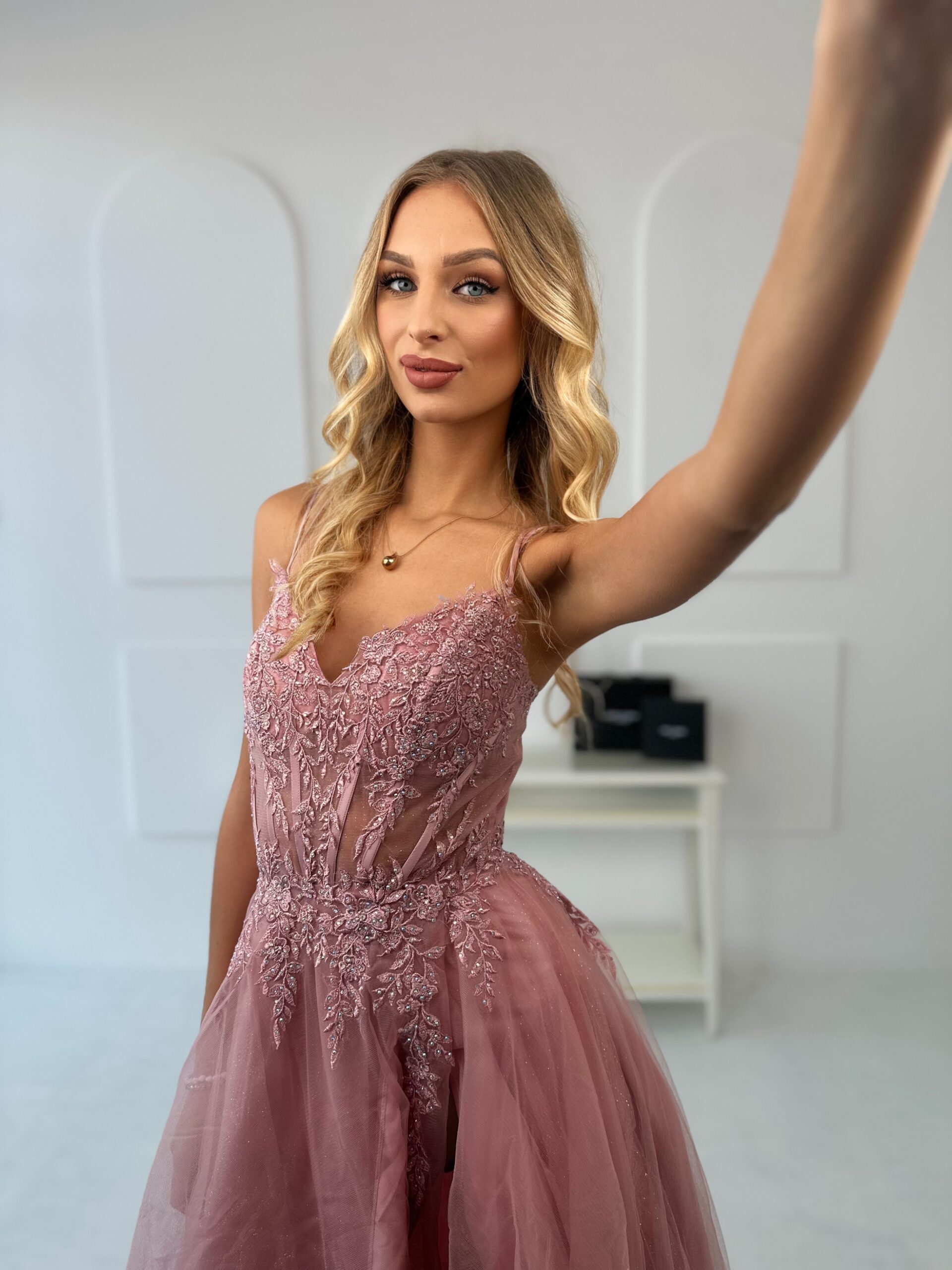 Elegancia, šik a jemné detaily v jednom modeli. Ružové tylové maxi šaty bol navrhnutý pre špeciálne príležitosti – od večerných večierkov, cez plesy až po elegantné oslavy. Tylový materiál dodáva šatám ľahkosť a jemný pohyb, zatiaľ čo ozdoby v hornej časti im dodávajú luxusný nádych. Maxi strih umožňuje voľný pohyb, zatiaľ čo jemná čipka a lemy dokonale zvýrazňujú siluetu a zvýrazňujú pás a výstrih. Šaty...„Raffaello” je perfektnou voľbou pre ženy, ktoré si cenia kombináciu klasického štýlu a moderného, elegantného dizajnu. Dostupné vo veľkostiach SML . Exkluzívna ružová prémiové šaty Toto je návrh pre ženy, ktoré chcú oslniť eleganciou a luxusom pri tých najdôležitejších príležitostiach. Vznešený odtieň zlata, dokonalý strih a najvyššia kvalita spracovania robia z tohto outfitu ideálny outfit na špeciálne príležitosti a večerné oslavy. Výnimočný. princeznovské šaty odporúčané na 18. narodeniny Toto je návrh pre dievčatá, ktoré sa chcú v tento jedinečný deň cítiť skutočne výnimočné. Rozprávkový dizajn, výrazná sukňa a elegantné detaily robia tento outfit podmanivým a fascinujúcim od prvého okamihu. MadelineFashion je vynikajúcou voľbou na svadbu, ples, Silvestra a iné elegantné špeciálne udalosti. Ak sa neviete rozhodnúť, ktorý veľkosť je pre vás to najlepšie kontaktuj nás cez Facebook alebo telefón. Ak veľkosť nie je na stránke, kontaktujte nás.