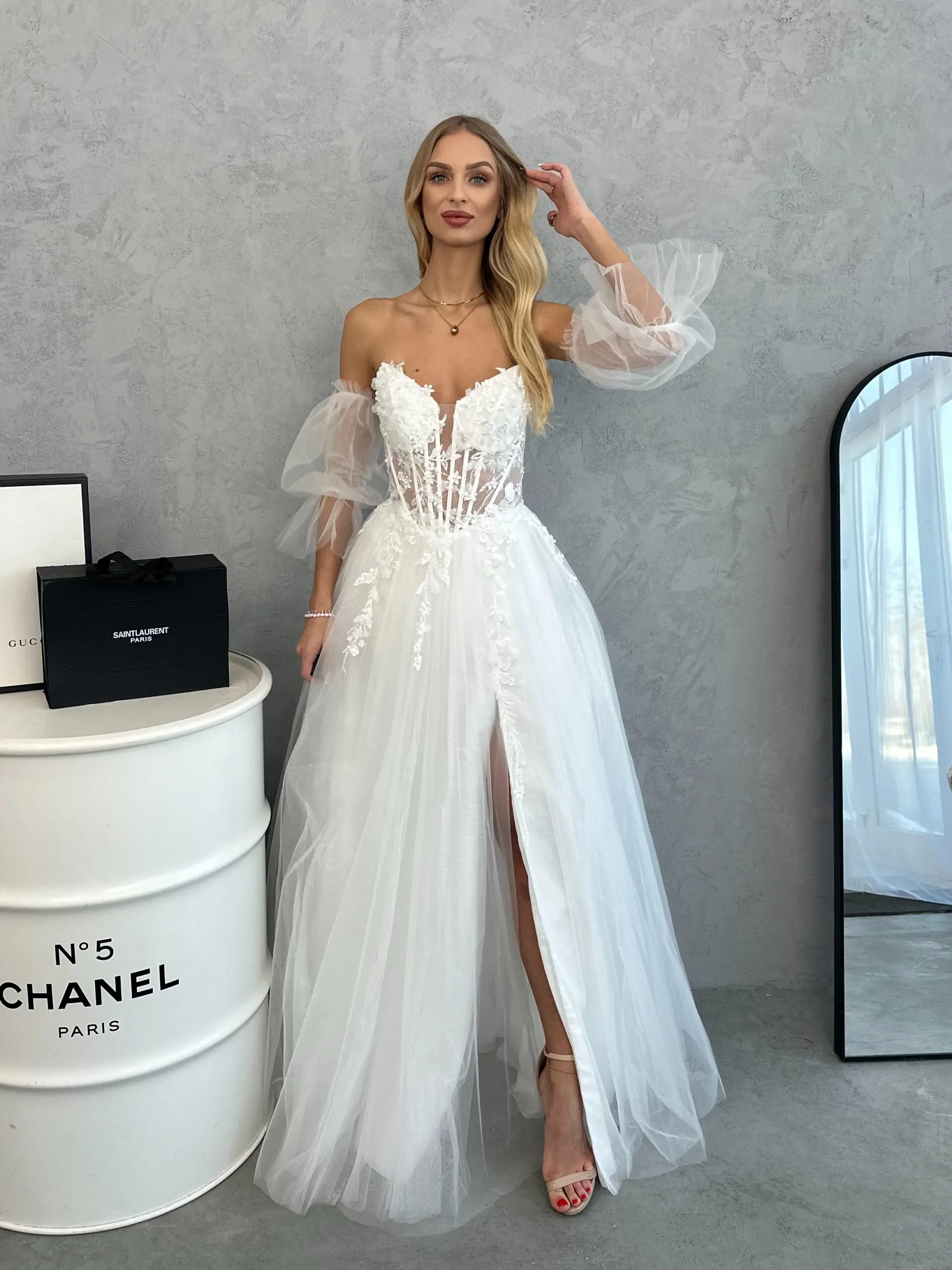 Nova Dress – moderné maxi svadobné šaty s rozparkom