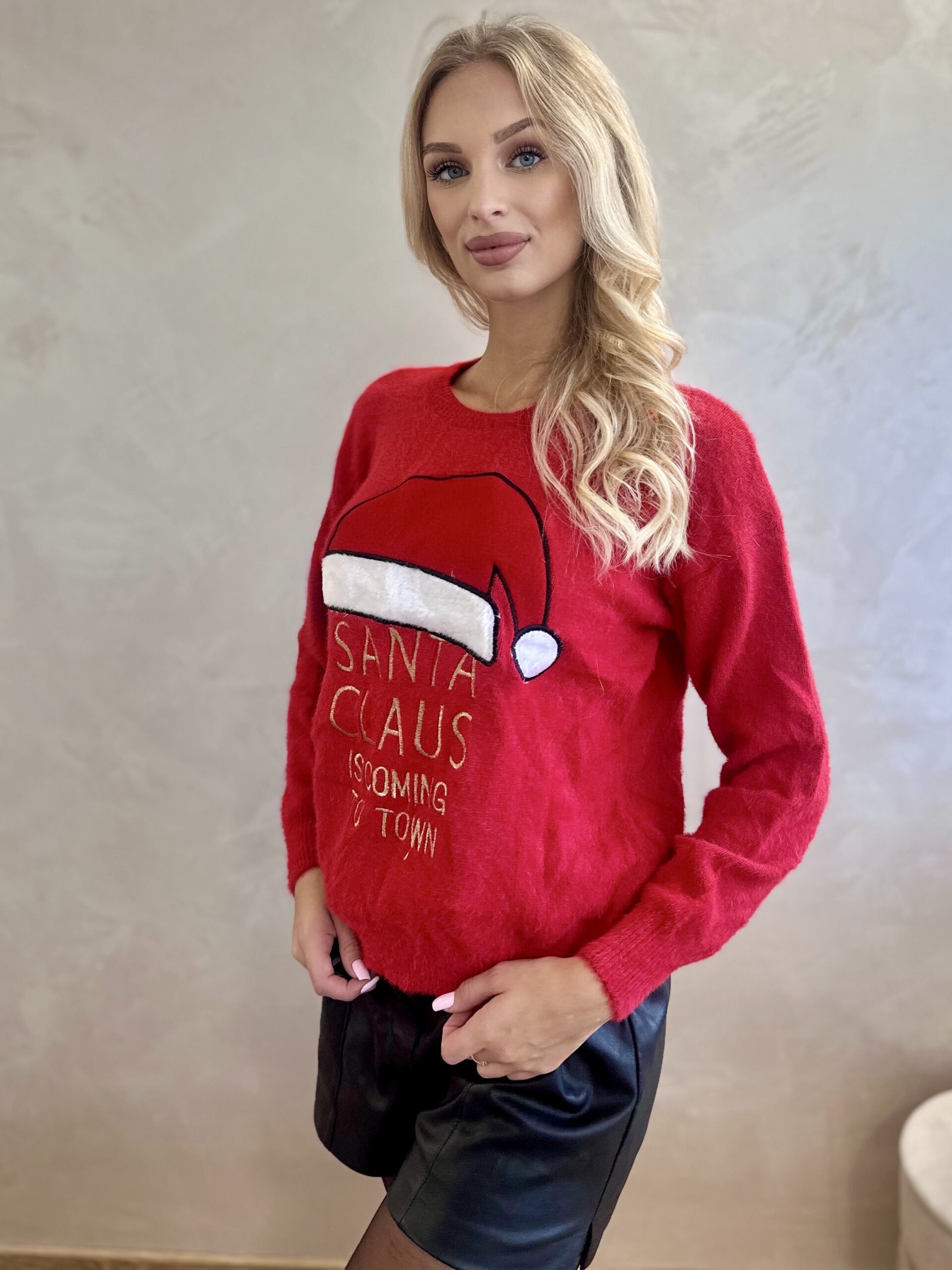 Sweter Świąteczny Z Alpaki Santa Claus Czerwony