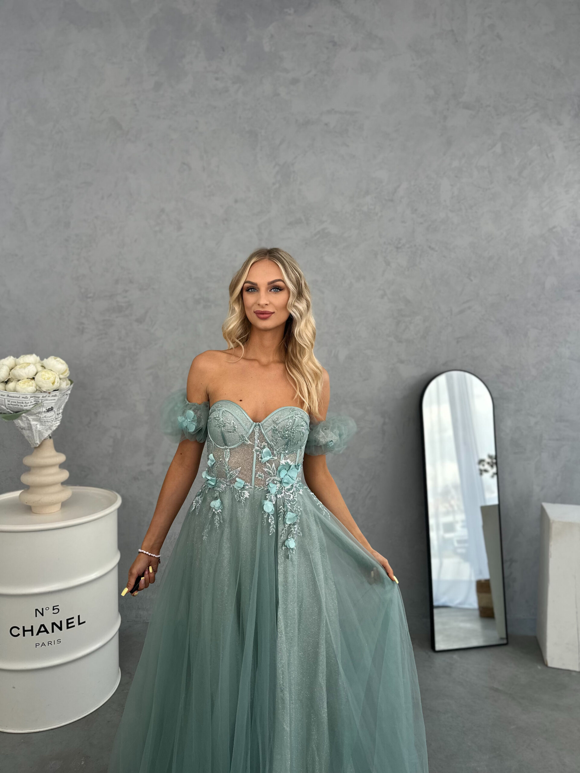 Piękna długa suknia mocno zdobiona haftami oraz zdobieniami w postaci mieniących się kryształków. Pięknie eksponuje kobiece kształty. Sukienka pięknie eksponuje plecy – hiszpanka . Wymarzona suknia o długości maxi z odkrytymi ramionami i zdobioną górą. Przeszycia dają niesamowity efekt, a kryształki cudownie mienią się w świetle. Zwężana na wysokości pasa wspaniale podkreśla talię. Plecy wspaniałe wycięte, w kształcie litery U. Dół sukienki został wykonany z kilku warstw lekkiego tiulu który znajduje się pod spodem. Sukienka Vanessa posiada z przodu wszyte miseczki, dzięki czemu nie trzeba zakładać biustonosza. Wyprodukowana i uszyta w Polsce. Dostępna w rozmiarach XS S M L . Sukienki od madelinefashion to doskonały wybór na wesele, studniówkę, sylwestra i inne eleganckie imprezy okolicznościowe. Dostępna w naszym e-sklepie w kilku wariantach kolorystycznych, więc nie wahaj się i wybierz ten, który jest dla Ciebie idealny. Jeśli nie możesz zdecydować, który kolor, rozmiar jest dla Ciebie najlepszy, skontaktuj się z nami za pośrednictwem Facebooka lub telefonu. W przypadku braku rozmiaru na stronie prosimy o kontakt.