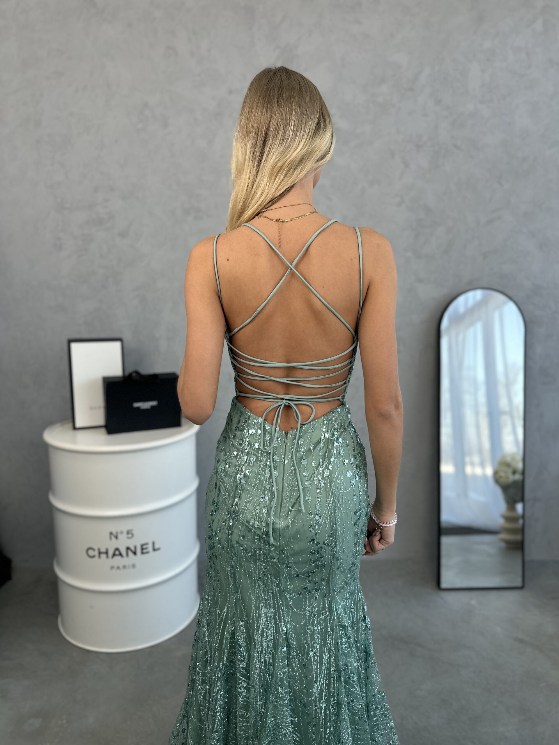 Sukienka Na Ramiączkach Syrenka z Tiulem Seraphine Szałwia