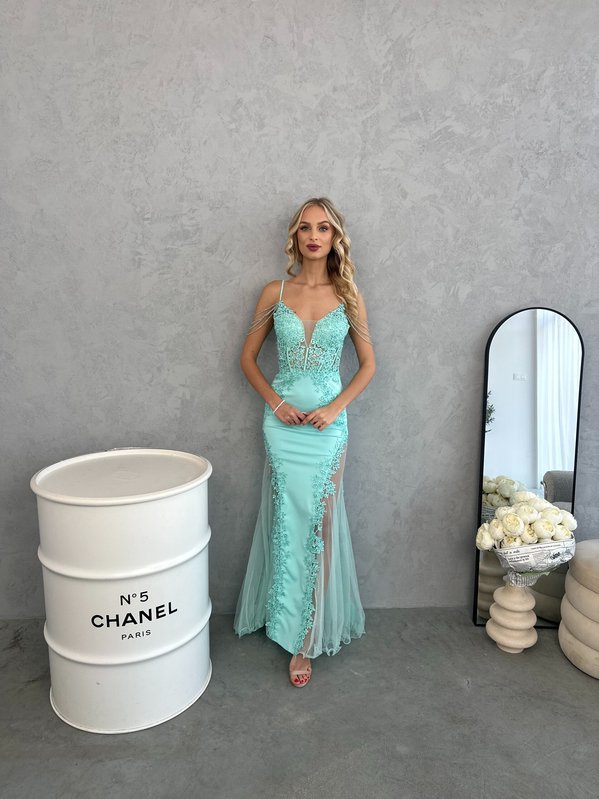 Zjawiskowa suknia dopasowana w kolorze miętowym z oryginalną koronkową górą z dekoltem w szpic Góra wykonana z siateczki obszytej gipiurową kwiatową koronką z naszytymi koralikami. Wygląda bardzo zmysłowo i oryginalnie. Plecy szyfonowe z łagodnym dekoltem w literę v. Dół sukienki dopasowany – ala rybka. Biała sukienka do ślubu cywilnego, kościelnego idealna na wesele czy na poprawiny. Dekolt w kształcie litery V. Zwężana na wysokości pasa wspaniale podkreśla talię. Suknia boda o kroju rybki (syreny) to kwintesencja ślubnej elegancji. Pięknie podkreśla talię, biodra i biust. Nasza Sukienka kolorze jasnej zieleni – szałwii doda lekkości i świeżości Twojej stylizacji – świetnie sprawdzi się wiosną i latem, ale także jako akcent kolorystyczny w bardziej stonowanych, jesienno-zimowych zestawach. Sukienki od Madelinefashion to doskonały wybór na wesele, studniówkę, sylwestra i inne eleganckie imprezy okolicznościowe. W naszym e-sklepie znajdziesz niepowtarzalne sukienki w niezwykle przystępnych cenach – nie wahaj się i wybierz ten, który jest dla Ciebie idealny. Jeśli nie możesz zdecydować, który kolor, rozmiar jest dla Ciebie najlepszy, skontaktuj się z nami za pośrednictwem Facebooka lub telefonu. W przypadku braku rozmiaru na stronie prosimy o kontakt. Nie wiesz, jaką suknię ślubną wybrać? Sprawdź, która będzie dla ciebie idealna!